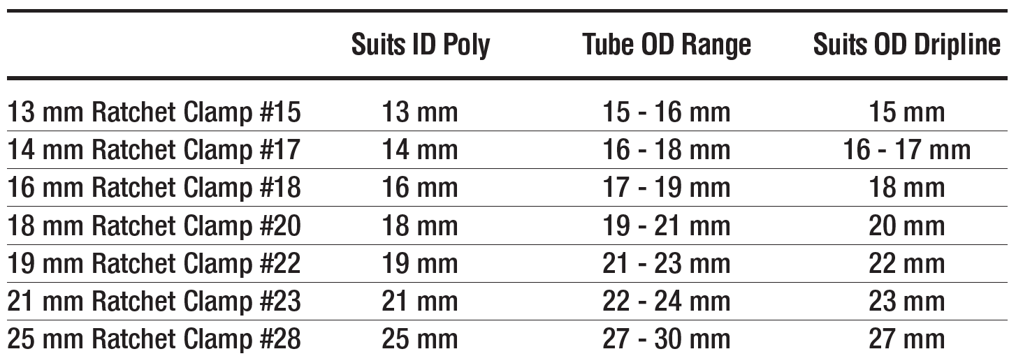 Antelco Ratchet Clamp - 16 mm (OD Range 17 - 19 mm) #18 - Parkland Irrigation Skip to content
