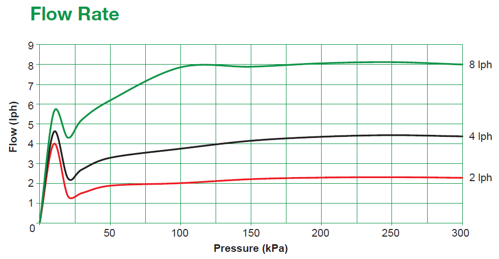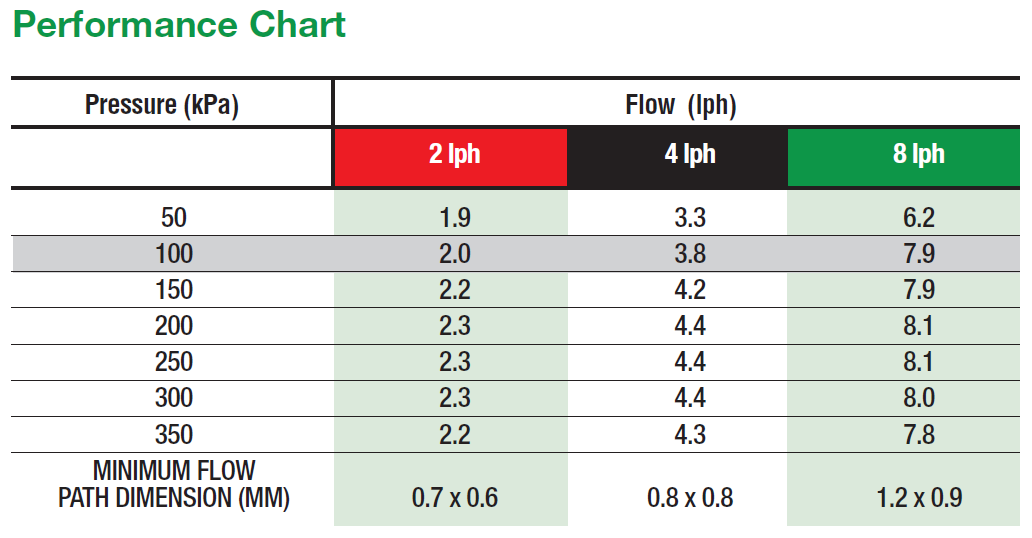 - 4 mm barbed dripper range with colour coded bases for easy identification: 2 lph (Red), 4 lph (Black) & 8 lph (Green).