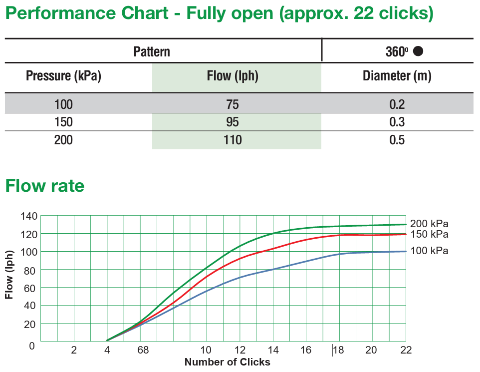 High Volume output with gentle umbrella pattern. Flow and coverage can be altered by rotating the cap.